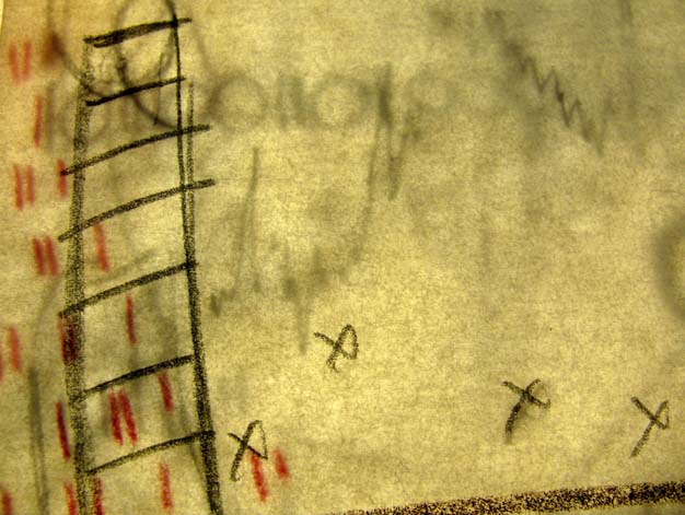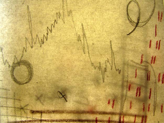 Music drawing, mixed media: acrylic, oilbar, graphite and chalk on paper