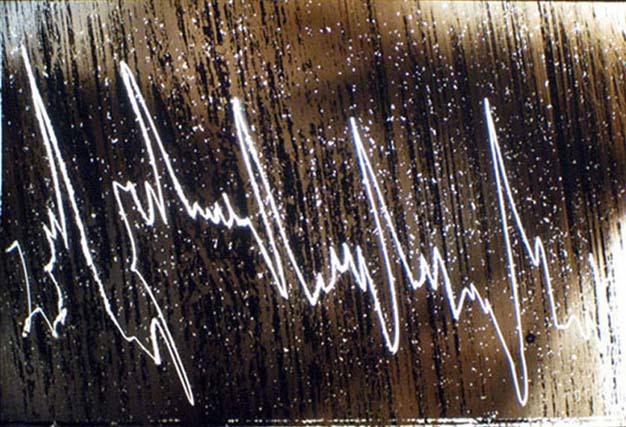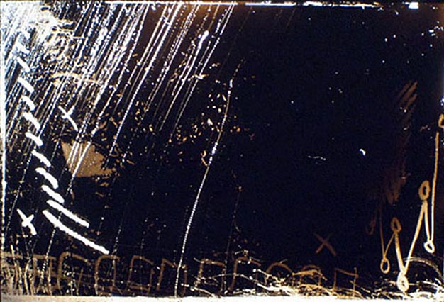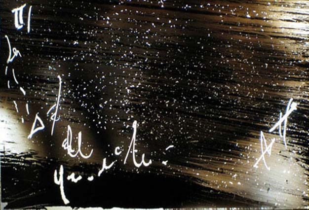 Quantum Universe (Soot Slides Series), needlepoint on sooted glass