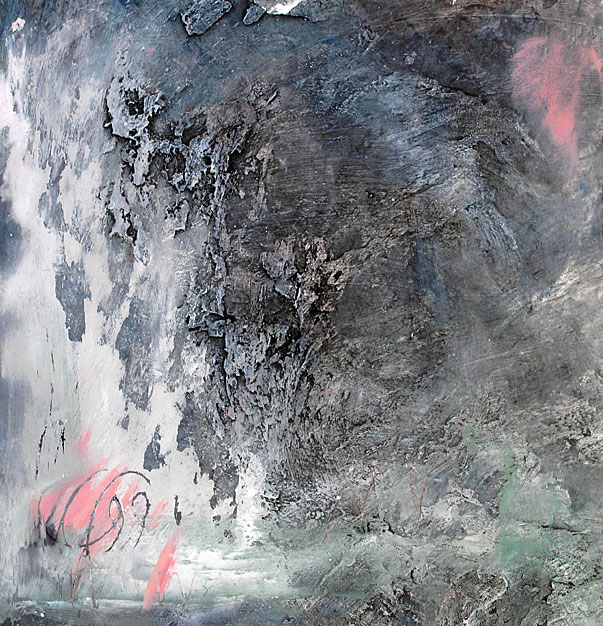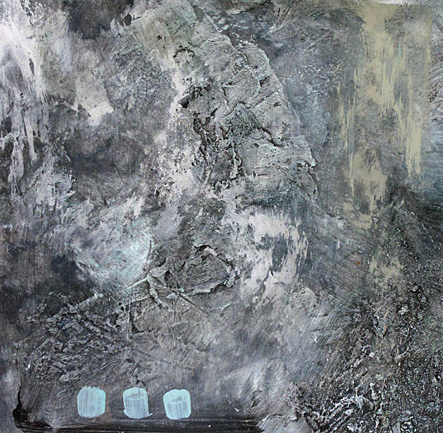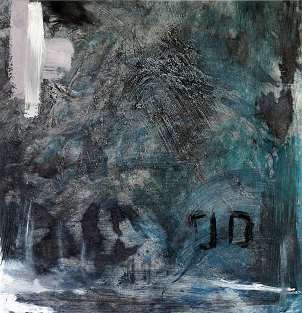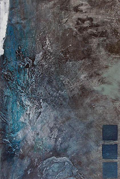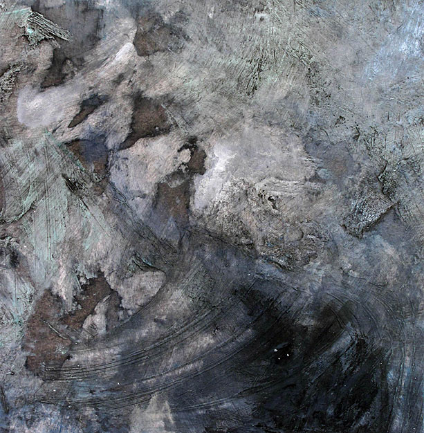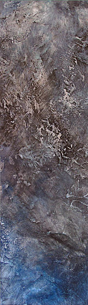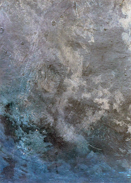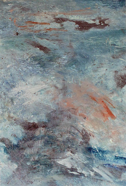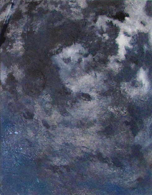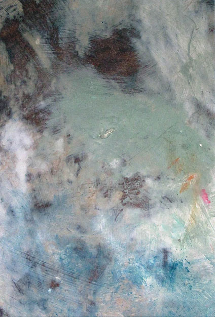 The deliberate relinquishing of complete control by the artist is intentional and allows each painting to grow organically. The resultant images are evocative and ethereal atmospheres, at once both macro and micro images; the earth from the air and the world through a microscope.