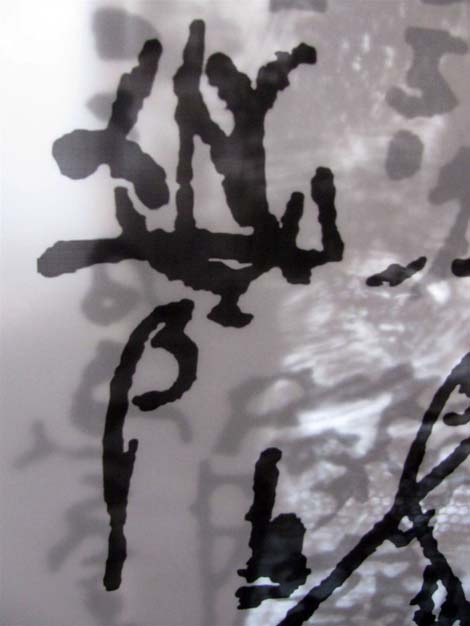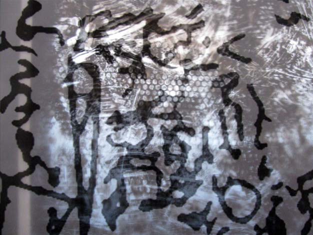 Trace & Soot Series, needlepoint on sooted glass, tracing paper