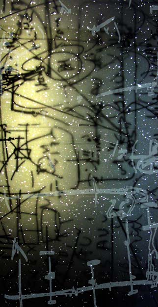 Soot Drawing Series, needlepoint on sooted glass