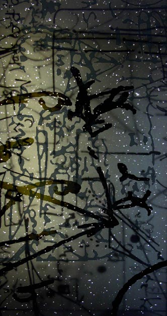 Soot Drawing Series, needlepoint on sooted glass